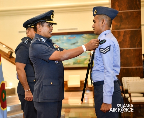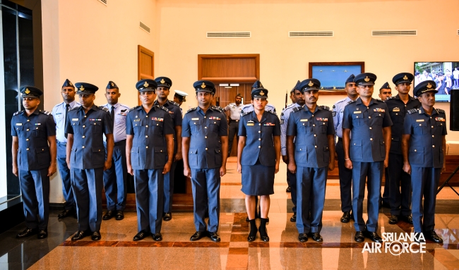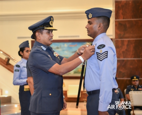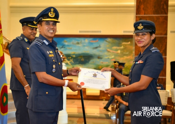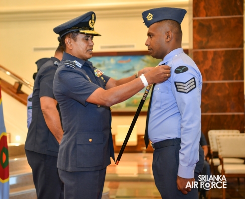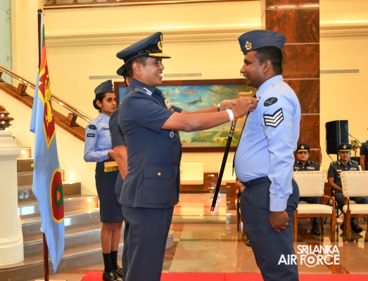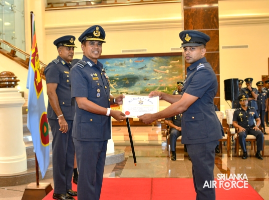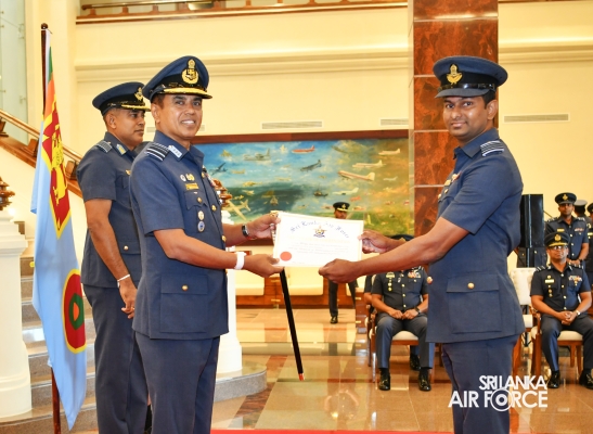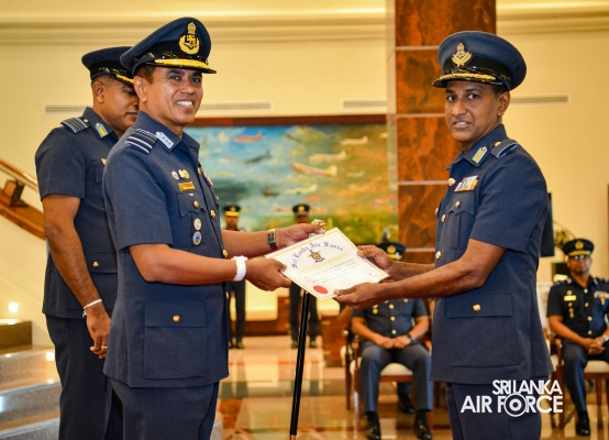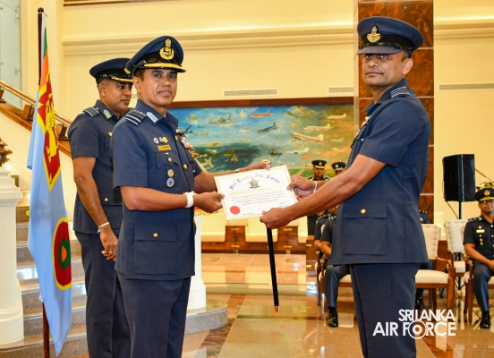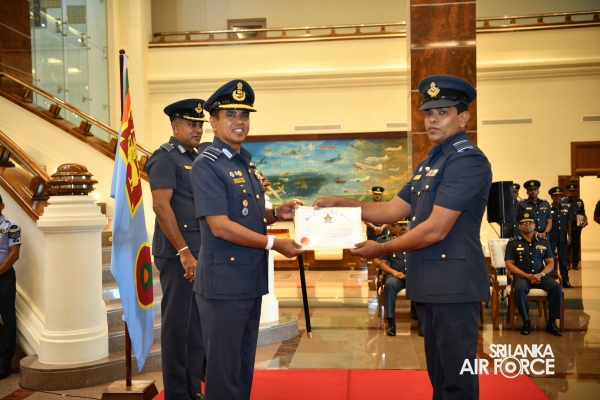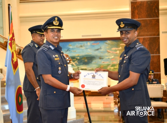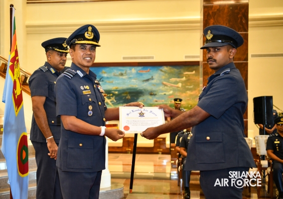 The Awarding Ceremonies for Air Crew Qualification Insignia and Certificates of Commendation were held today (30 July 2024) at Air Force Headquarters. The Commander of the Air Force, Air Marshal Udeni Rajapaksa, graced the event as the chief guest. Certificates of Commendation were conferred upon individuals in recognition of their significant contributions to their respective establishments and the Air Force as a whole. Further, Flight Engineer Brevets and Load Master Brevets were awarded to individuals who successfully completed the requisite training courses.