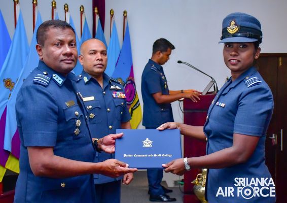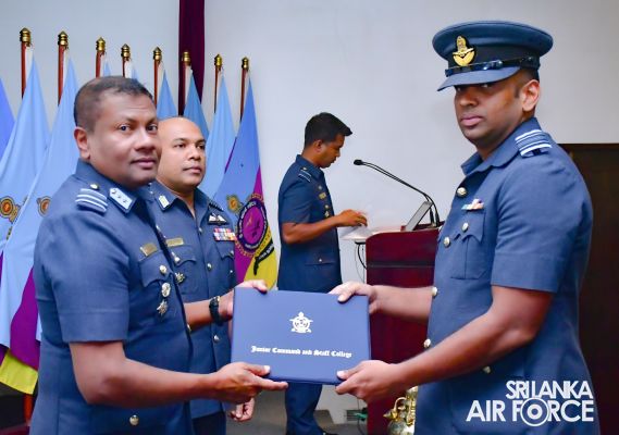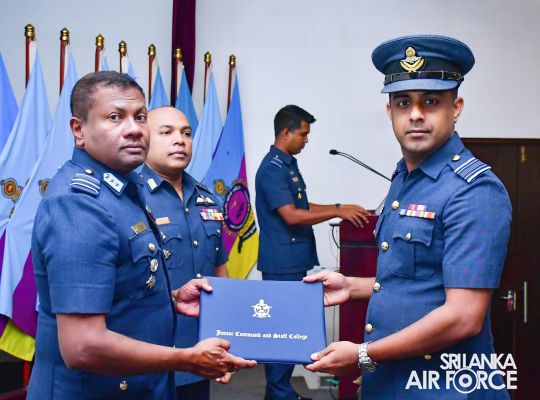 Graduation ceremony marked the end of 14 weeks extensive academic endeavour attended by 27 officers from Sri Lanka Air Force and one officers from Sri Lanka Navy. Among them the award for the Best All-Round Officer of the course was secured by Flight Lieutenant RT Weerawardana The Junior Command and Staff College is accredited to the General Sir John Kotelawala Defence University and the officers who fulfill the required criteria will be offered a Post Graduate Diploma in Defence Management.
