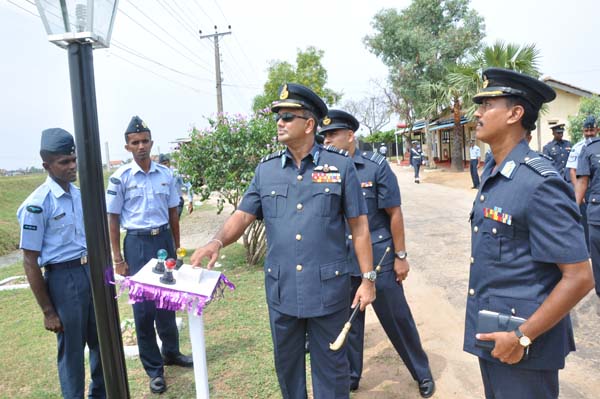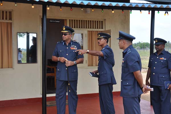 The Commanding Officer of SLAF Batticaloa, Group Captain Allen Fernando received the Commander on his arrival to the Station and a Guard of Honour was conferred by Flight Lieutenant SP Thoradeniya. During the course of the inspection the Commander declared open the newly built station Main Guard Room and 2 chalets for Officers & Airmen of the station. The Commander also inaugurated the road illumination lightning project.