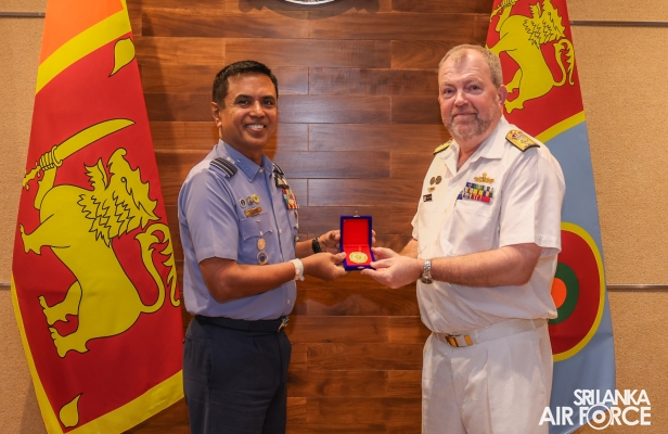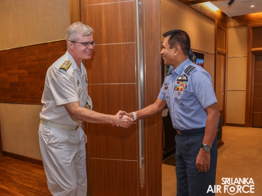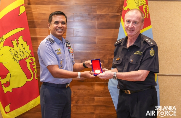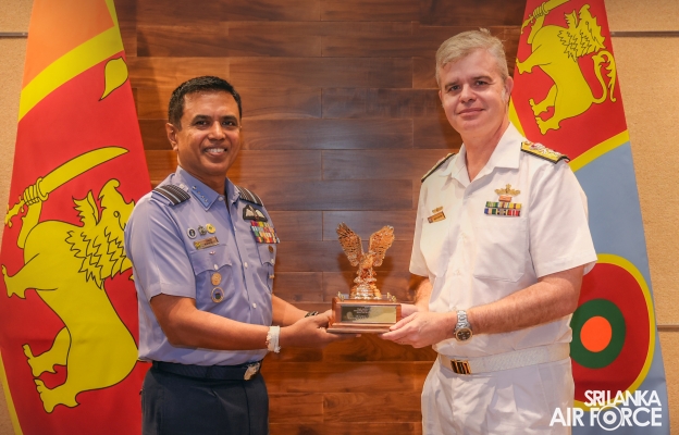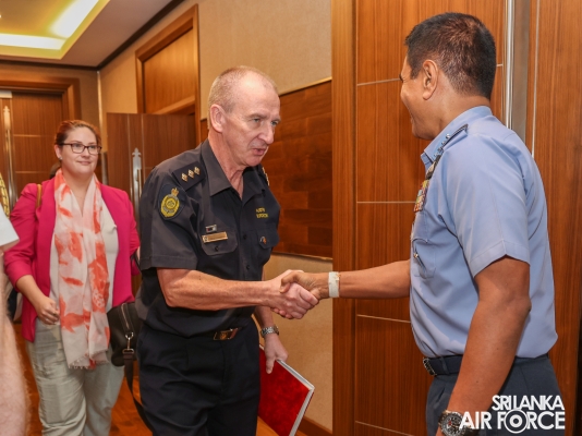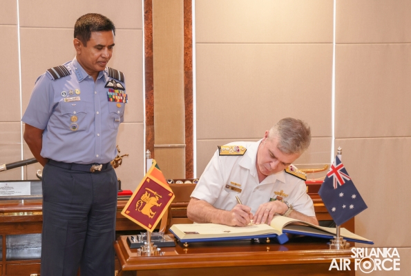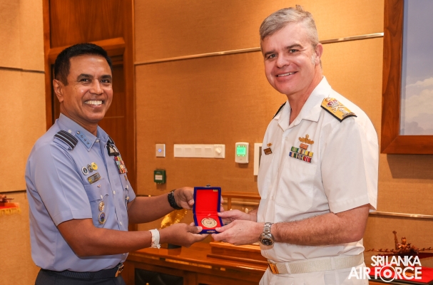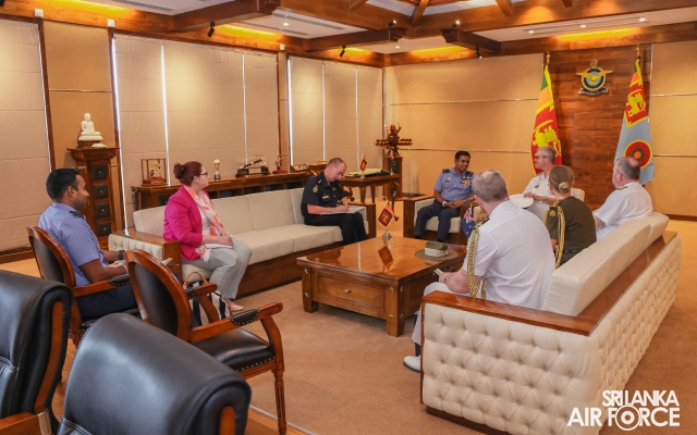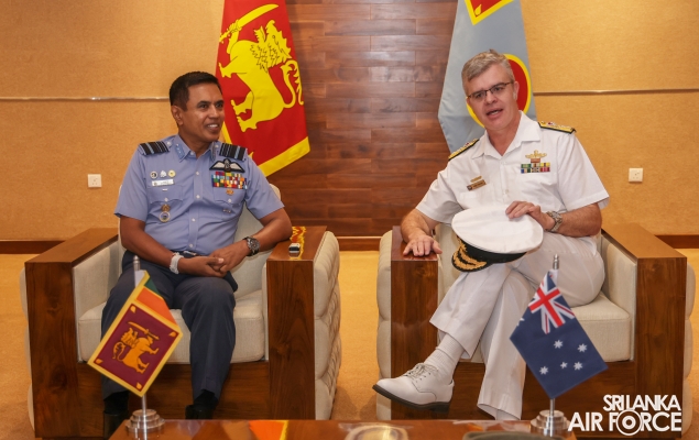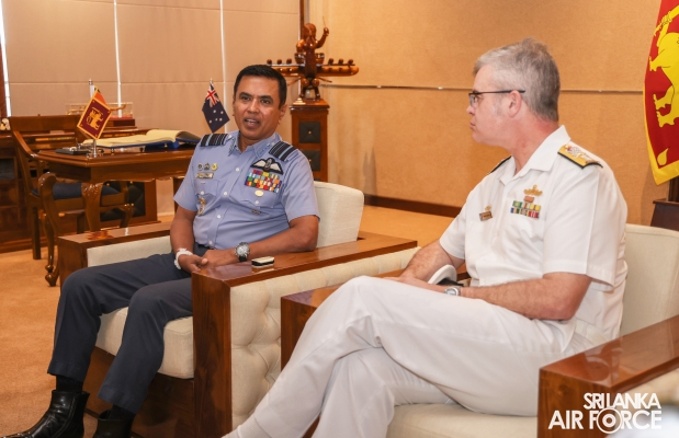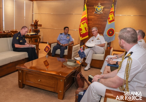 The Commander of the Joint Agency Task Force, Rear Admiral Bret Sonter, along with a defence delegation, paid a courtesy call on the Commander of the Air Force, Air Marshal Udeni Rajapaksa, at Air Force Headquarters today (14 August 2024).