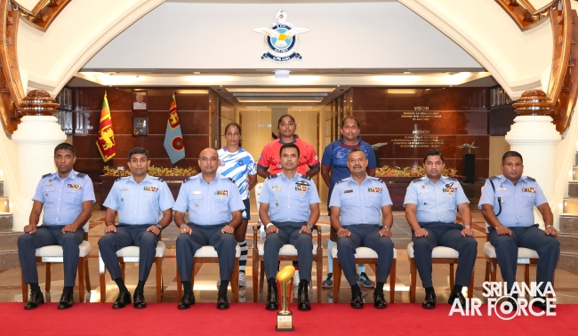 The Air Force Commander’s Cup Rugby Trophy was unveiled today (15 August 2024) at the Air Force Headquarters, in a ceremony graced by the Commander of the Air Force, Air Marshal Udeni Rajapaksa. All participating ‘A’ Division rugby teams were present for this momentous occasion. The Commander extended his best wishes to all teams, encouraging them to strive for success. The event was attended by Deputy Chief of Staff, Director Sports, Chairman SLAF Rugby, Deputy Chairman SLAF Rugby, Secretary Air Force Sports Council, Secretary SLAF Rugby and other members of the Air Force Sports Council.