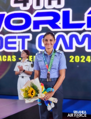 Lady Officer Cadet Savindi JMS, an outstanding swimmer from the Sri Lanka Air Force currently undergoing Cadet Training, has achieved a remarkable feat by winning bronze medals in the 50m freestyle and 100m backstroke competitions at the 4th CISM Military World Cadet Games, held in Venezuela from 16 to 24 August 2024.