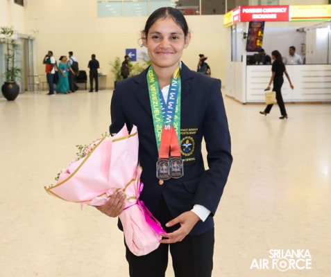 Upon her return to Sri Lanka, Lady Officer Cadet Savindi was welcomed with a warm reception at Bandaranaike International Airport today (27 August 2024) by representatives of the Sri Lanka Air Force, who recognized her outstanding accomplishments.