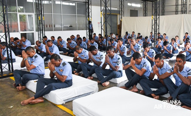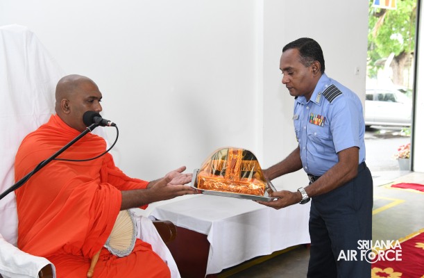 In line with the anniversary celebration, a ‘Dharma’ sermon programme was held at the Depot Receipt and Dispatch hanger in the morning with the presence of Base Commander, Air Vice Marshal Deshapriya Silva.