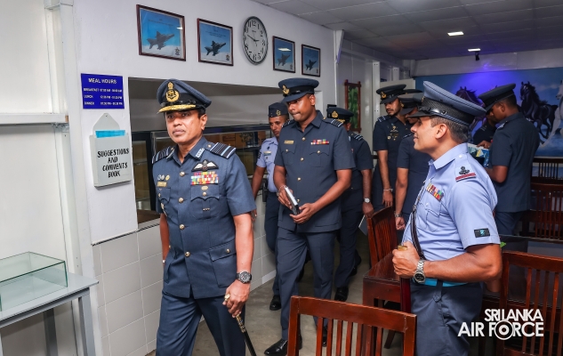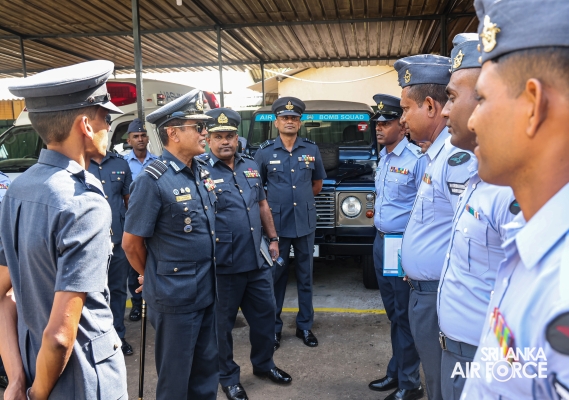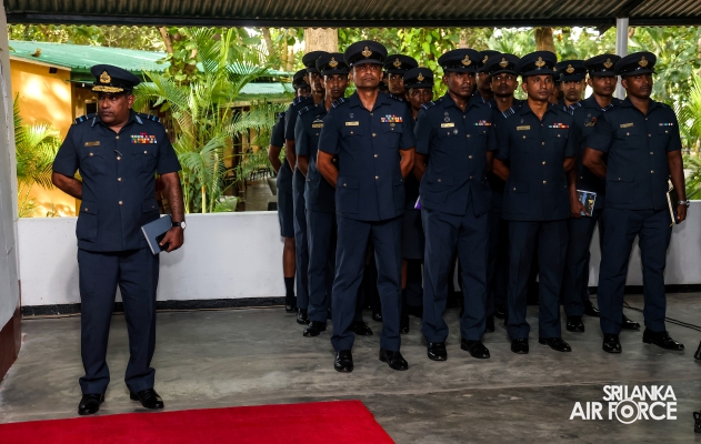 The Commander of the Air Force, Air Marshal Udeni Rajapaksa, conducted the Annual Commander’s Inspection at SLAF Station Bandaranaike International Airport Katunayake today (13 September 2024). The Commander was received by the Commanding Officer, Air Commodore Nishantha Priyadarshana, where a ceremonial street line was accorded upon his arrival.