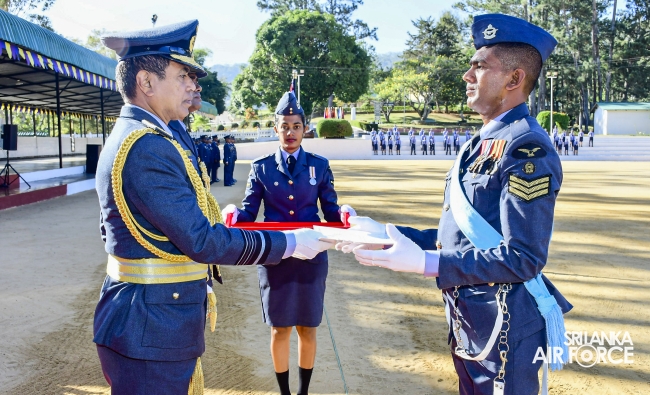 The Commander reviewed the Commander’s Inspection Parade, commanded by the Commanding Officer, Air Commodore HTH Dharmadasa. Further, the Certificates of Commendation was awarded to Flight Sergeant Priyantha RDN (Operations Ground I) in recognition of his meritorious contributions to the School in particular and to the Air Force in general.