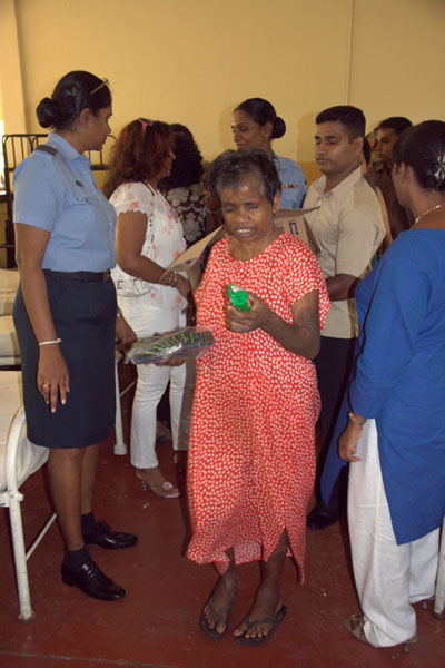 The items donated were contributed by the Seva Vanitha branches of all Bases/Stations and Units of the SLAF and the Directorate of Welfare. The Chairperson of the SLAF Seva Vanitha Unit, Mrs Neelika Abeywickrema, visited the Ward on 13 May 2011 accompanied by a group of ladies of the Seva Vanitha to formally present the donated items to the hospital management and the inmates. The event was followed by an interaction with the inmates of the Ward where they were treated to refreshments amidst an entertainment provided by a SLAF calypso band much to the delight of the patients of the Ward.