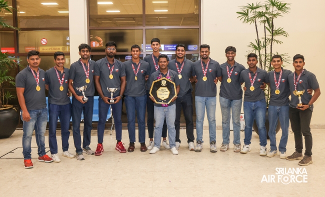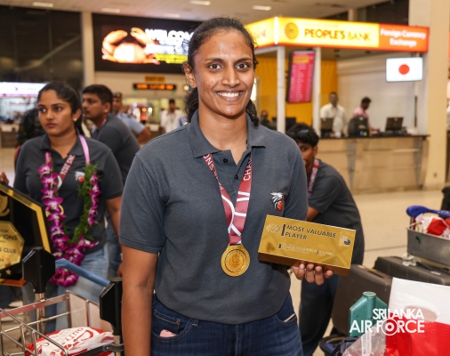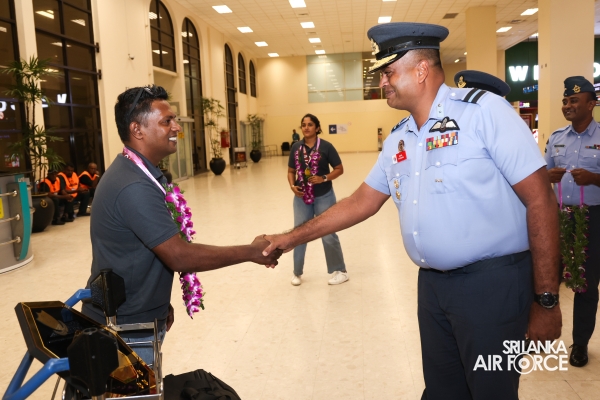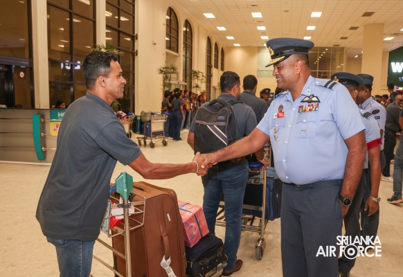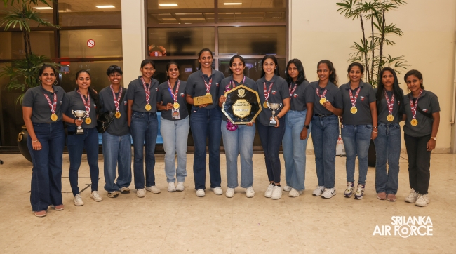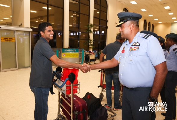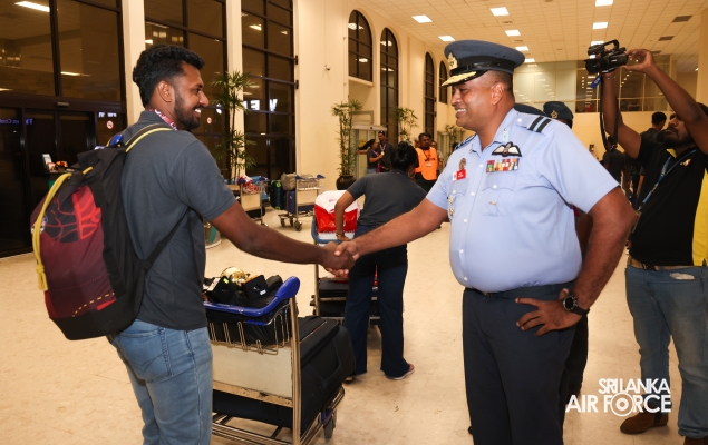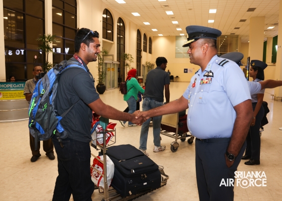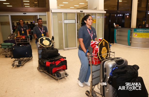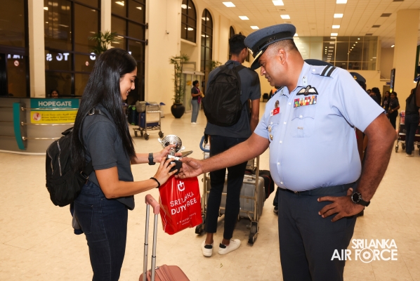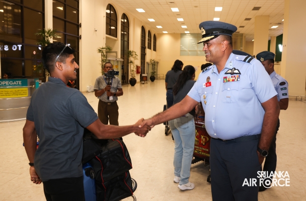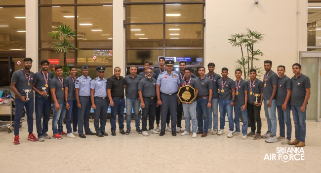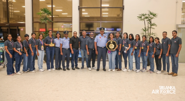 Following their triumphant victories, the Sri Lanka Air Force Basketball teams returned to the country today (01 October 2024). They were warmly welcomed at Bandaranaike International Airport by the Chairman of Air Force Basketball, Air Commodore Amal Perera, along with other officials.