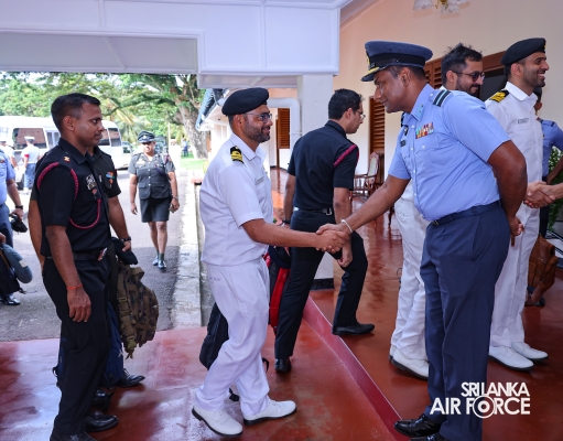 The delegation was warmly welcomed by the Sri Lanka Air Force with a captivating traditional dance performance by the SLAF Dance Troupe. The Acting Base Commander of SLAF Base Katunayake, Air Vice Marshal Rajinth Jayawardana, along with the Director of Ranaviru Welfare, Air Commodore Buddhika Piyasiri, and representatives from the Sri Lanka Army and Navy, were present to greet the delegation.