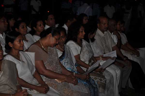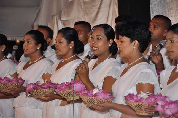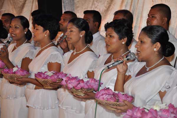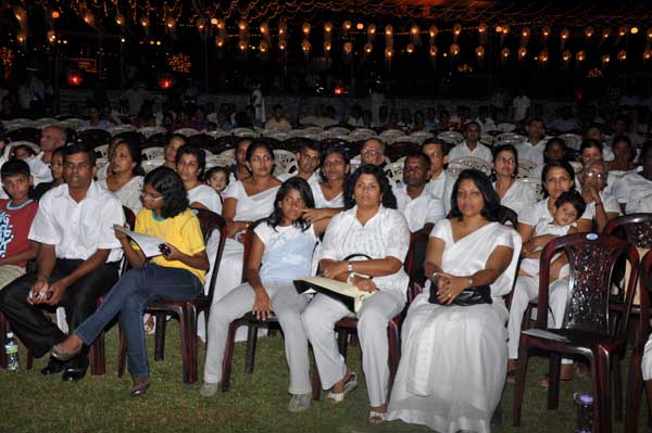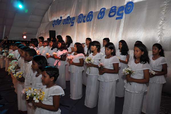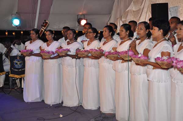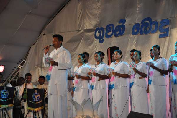 SLAF Seva Vanitha Unit, in collaboration with SLAF Station Colombo, staged ‘Bathi Gee Piduma’, a Vesak Bhakthi Gee Programme, in the PM hours on 18 May 2011 at the ‘Rifle Green’ Sports Grounds at SLAF Station Colombo to mark the 2600 Sambudhathva Jayanthi.