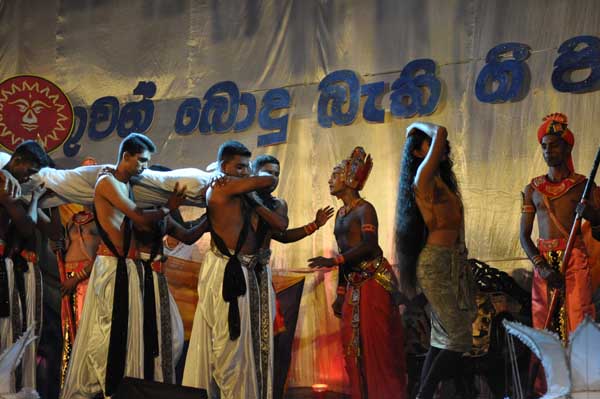 ‘Bethi Gee Piduma’ consisted of fourteen famous soul-soothing songs sung by various artistes extolling the life and deeds of the Lord Buddha. The songs were sung by five choirs of SLAF personnel and their family members, each choir comprising thirty personnel. SLAF Colombo Officers’ Mess, SLAF Colombo WOs’ & SNCOs’ Mess, SLAF Colombo Corporals’ Club & LACs’ Club, Children of SLAF Colombo Officers & Other Ranks and the SLAF Band formed up the five choirs. The special feature of the show was the ballet choreographed and performed by the SLAF Band highlighting the special events of the Lord Buddha’s life from ‘Abhinishkramana’ to the ‘Sambuddhathva’.