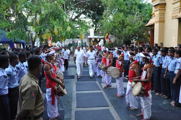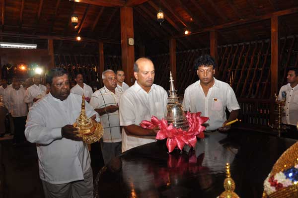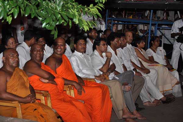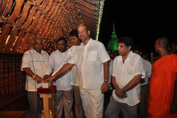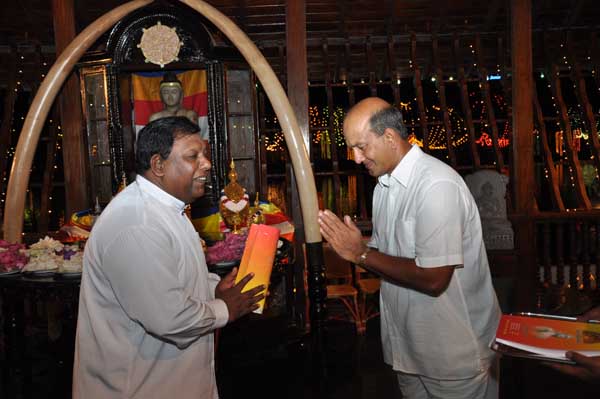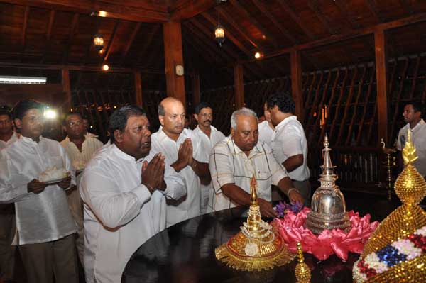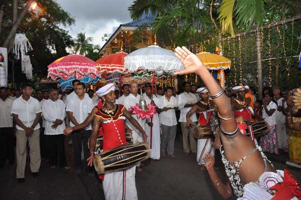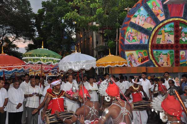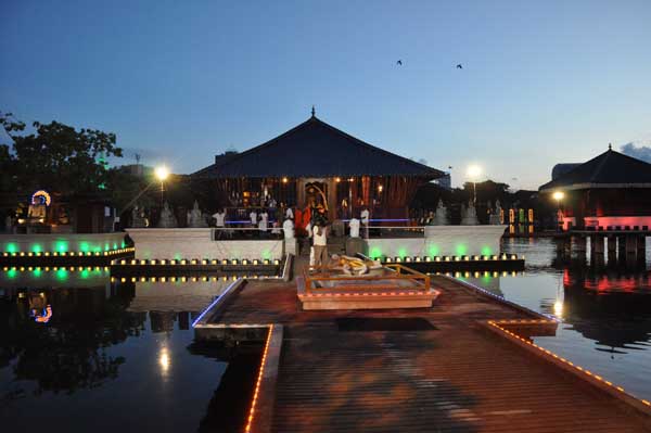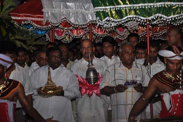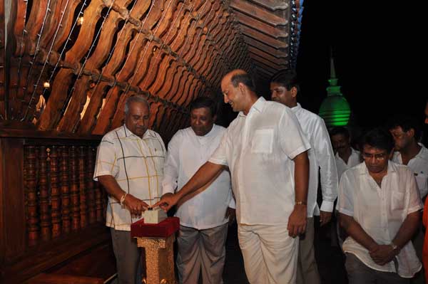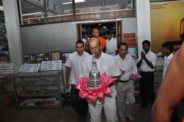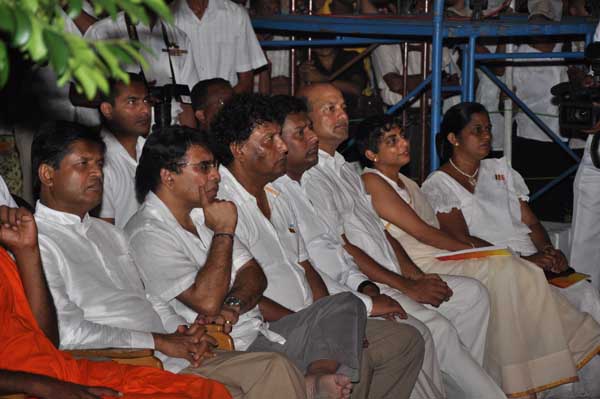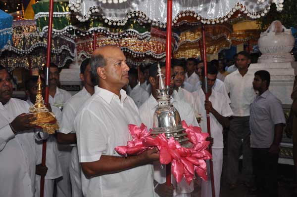 The guests Minister Lakshman Seneviratna, A.R.M. Abdul Cader, Secretary of Mass media Mr. W.B. Ganegala, provincial Council Secretary Dr. Nihal Jayathilaka and the Commander of the Air Force were accompanied to the “Seema Malakaya” from the Gangarama temple in a ‘Perahara’. The Commander and Minister Lakshman Seneviratna took the main and other reliquaries respectively whilst they were going to Seema Malakaya.