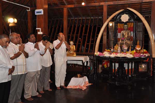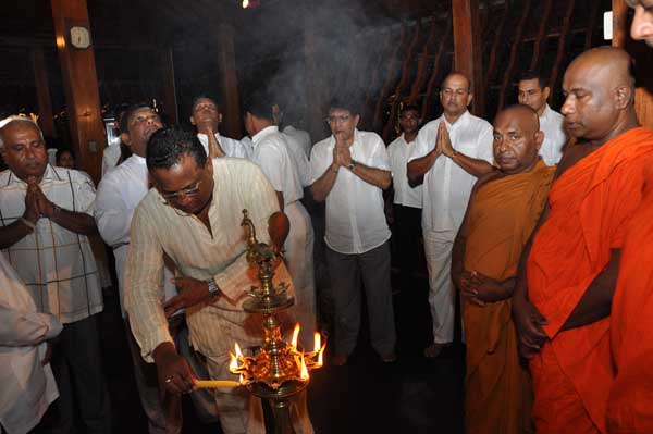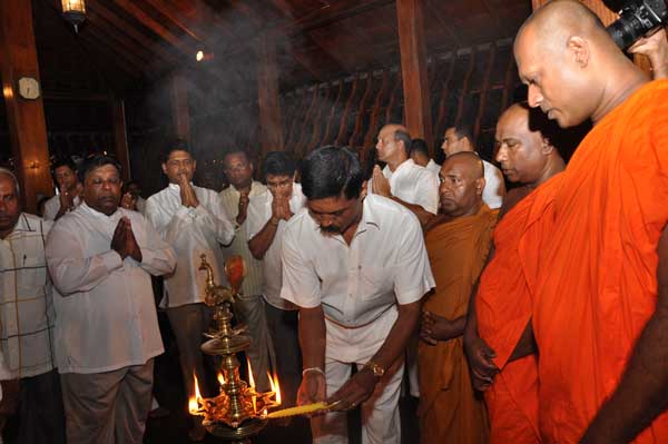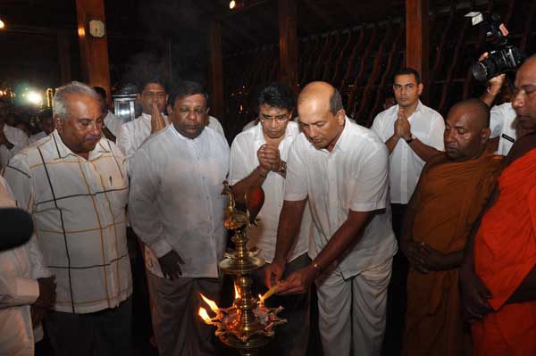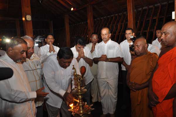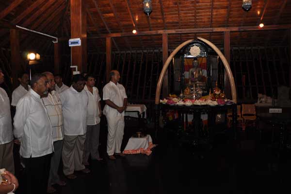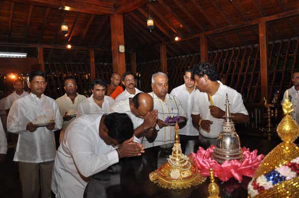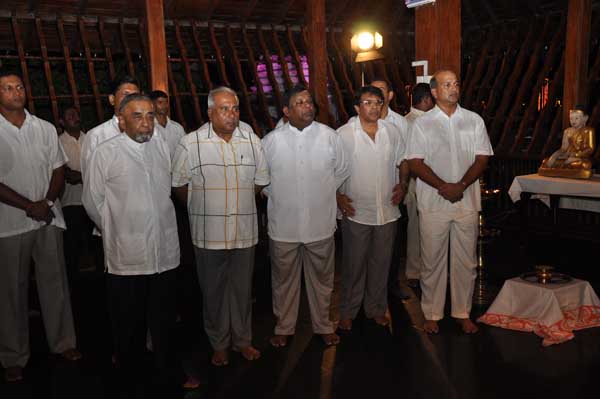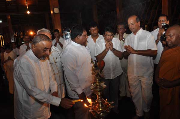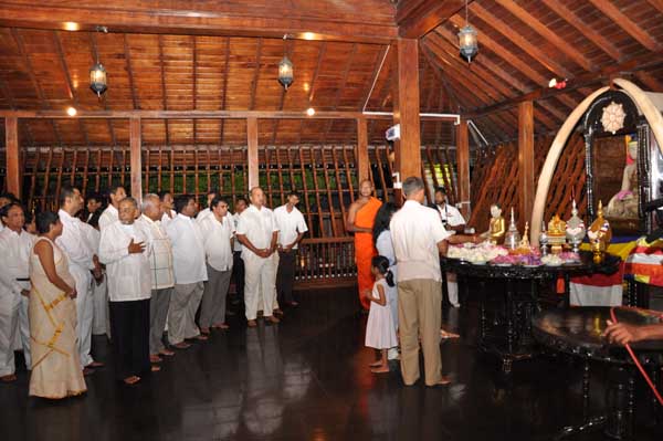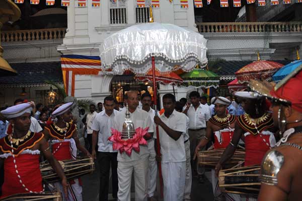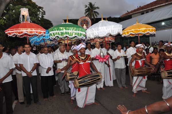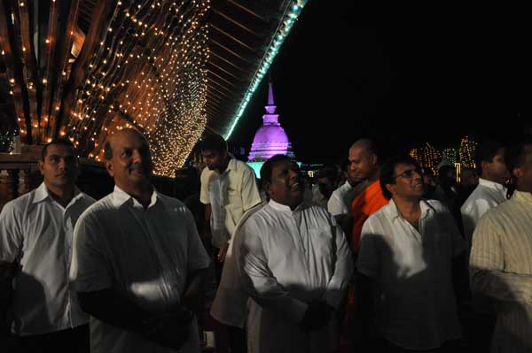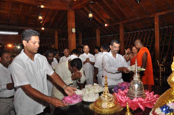 The guests Minister Lakshman Seneviratna, A.R.M. Abdul Cader, Secretary of Mass media Mr. W.B. Ganegala, provincial Council Secretary Dr. Nihal Jayathilaka and the Commander of the Air Force were accompanied to the “Seema Malakaya” from the Gangarama temple in a ‘Perahara’. The Commander and Minister Lakshman Seneviratna took the main and other reliquaries respectively whilst they were going to Seema Malakaya.