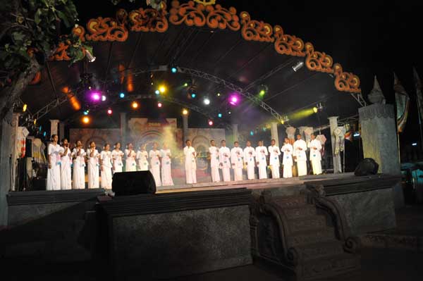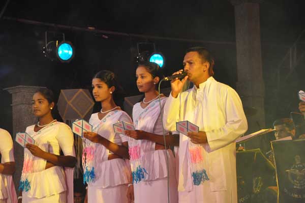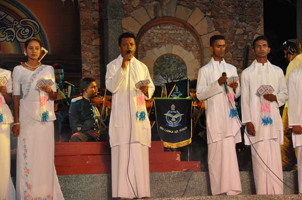 The lighting of the oil lamp by the distinguished guests followed the chanting of ‘Seth Pirith’ by members of the ‘Maha Sangha’. Then prior to witnessing the Bakthi Geetha program Air Marshal Harsha Abeywickrama switched on the lights of the Vesak Kalapaya.