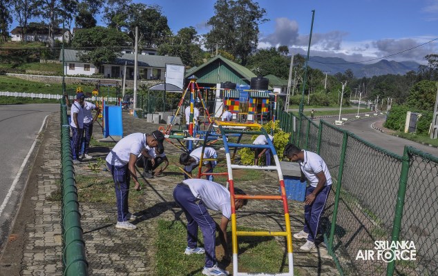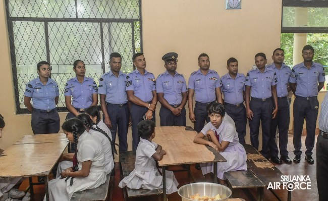 Further, in line with the anniversary celebrations, ‘Sharamadana’ campaigns at ‘EAGLES’ children’s park Diyatalawa, Bus Stand located at the Survey Junction, General Hospital Diyatalawa, Ellegama Temple and Kahagolla ‘Aranayaya’ were conducted. Moreover, a tree planting programme was conducted with the proper directives extended by the Commanding Officer to help enrich the environment of this renowned training establishment. In addition, a sumptuous lunch was given to the children who are accommodated at 'Sri Sudarshi' School for the Deaf and Blind, Dowa. Also, ration packs were distributed to Ambegoda Orphanage with the voluntary contribution from all ranks of the school.