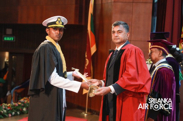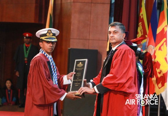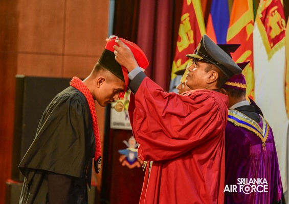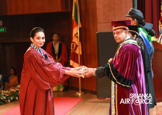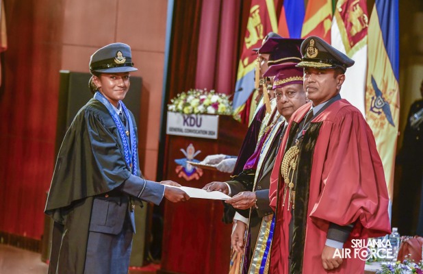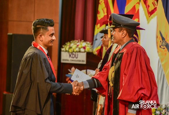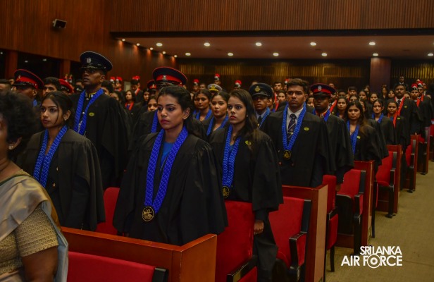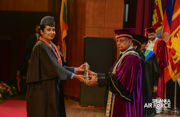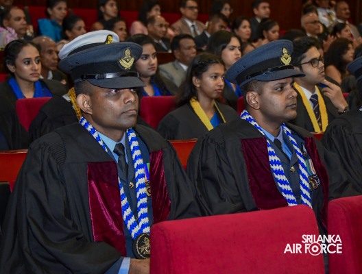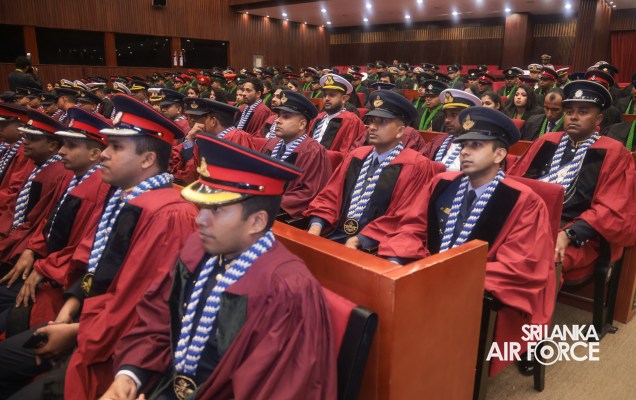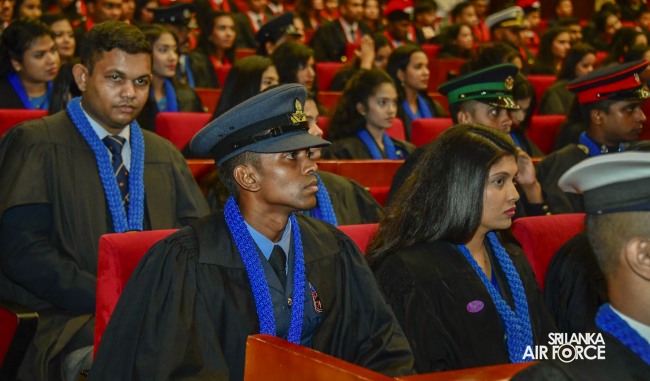 The graduation session, held on 14 October 2024, was honoured by the presence of the Commander of the Air Force, Air Marshal Udeni Rajapaksa, as the Chief Guest. During the event, the Commander awarded parchments and special accolades to the graduates in recognition of their outstanding achievements. Additionally, the Commander delivered an inspiring address during the ceremony. He emphasized the importance of overcoming challenges and obstacles, urging the graduates to become the leaders, practitioners and influencers who will guide the nation toward achieving its fullest potential. He encouraged them to cultivate creativity, innovation and selflessness in their future careers and to be passionate about contributing to the holistic development of society.