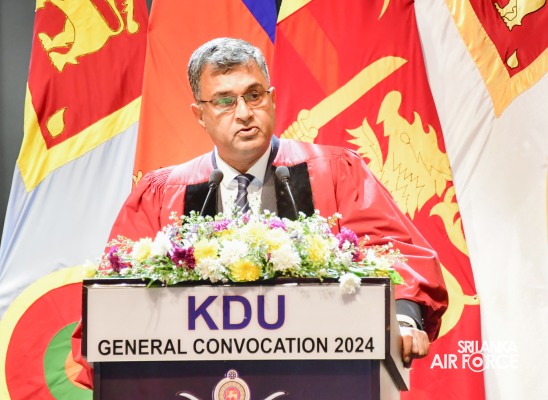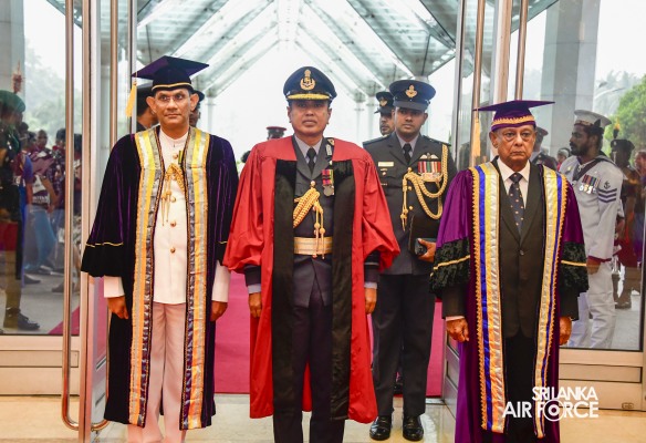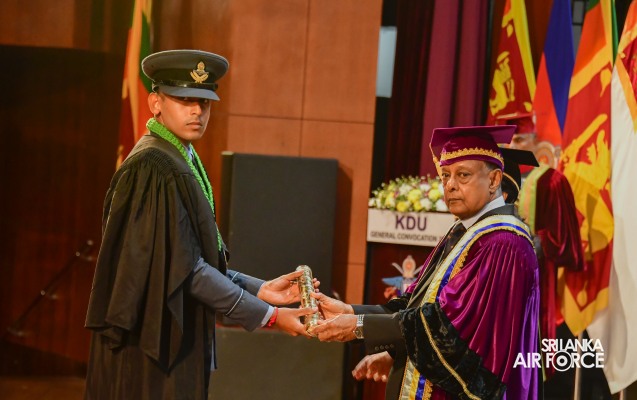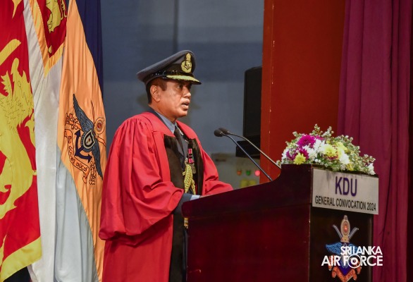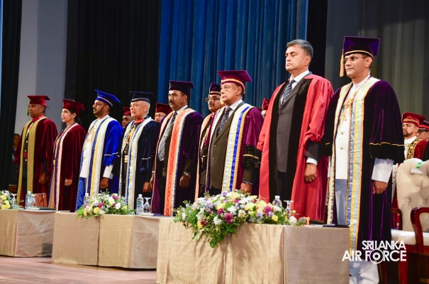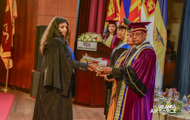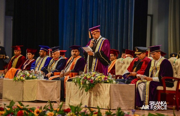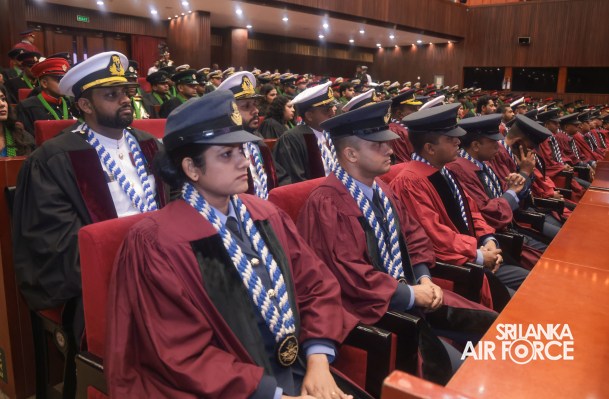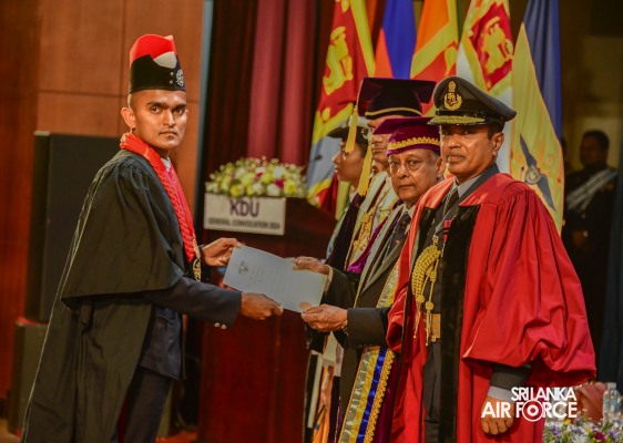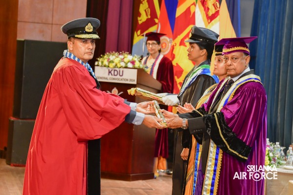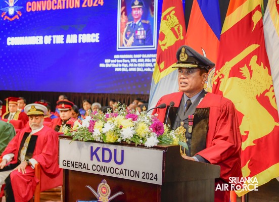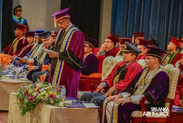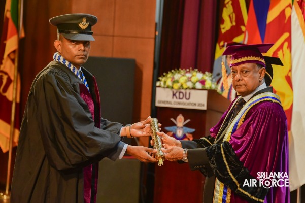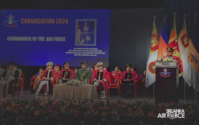 The 35th General Convocation of the General Sir John Kotelawala Defence University concluded today (15 October 2024) at the BMICH, with the Secretary to the Ministry of Defence, Air Vice Marshal Sampath Thuyacontha (Retd), attending as the Chief Guest. During his address the Defence Secretary reflected on the nation's experiences with both conflict and the healing power of peace. He urged the graduates to carry forward the lessons of the country’s past as they embark on the next phase of their journey. He reminded them to never forget the value of peace, stability, and cooperation in shaping the future. This year's convocation, parchments were awarded PhD, Master’s Degree and Postgraduate Diploma holders from the Faculty of Graduate Studies, as well as Bachelor’s Degree holders from various faculties of the University.