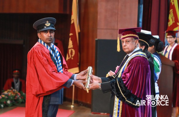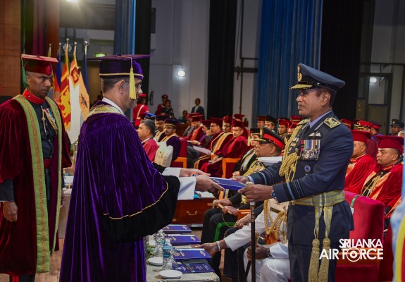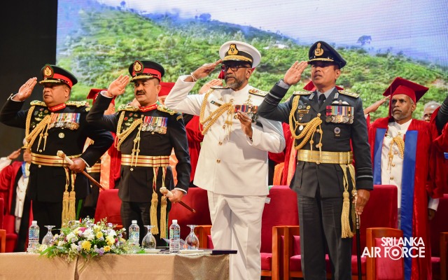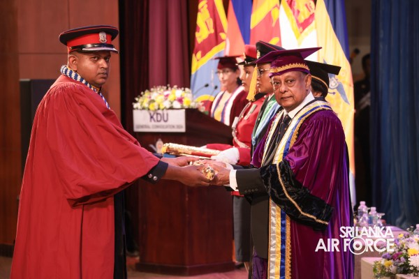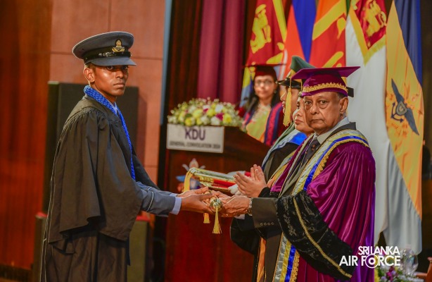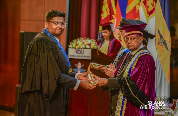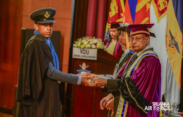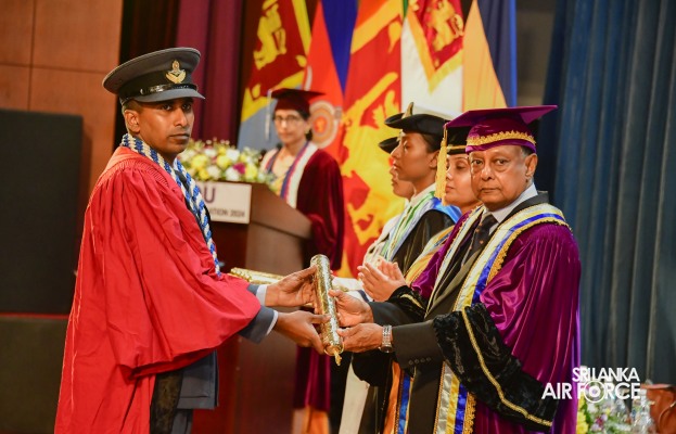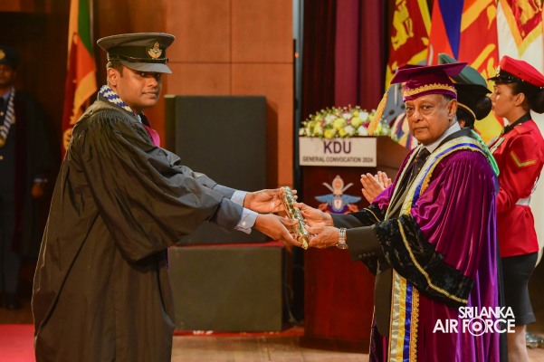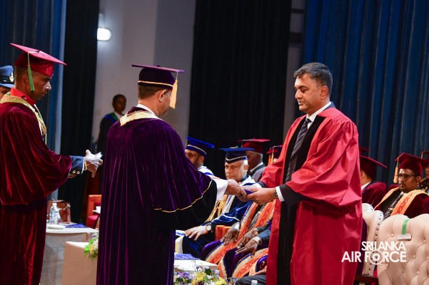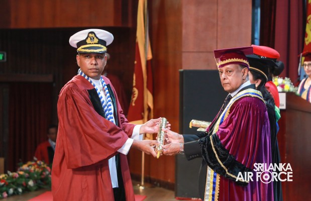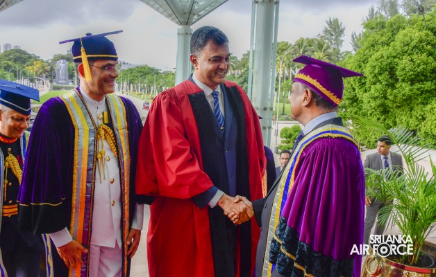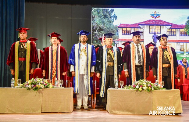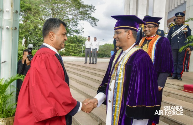 The 35th General Convocation of the General Sir John Kotelawala Defence University concluded today (15 October 2024) at the BMICH, with the Secretary to the Ministry of Defence, Air Vice Marshal Sampath Thuyacontha (Retd), attending as the Chief Guest. During his address the Defence Secretary reflected on the nation's experiences with both conflict and the healing power of peace. He urged the graduates to carry forward the lessons of the country’s past as they embark on the next phase of their journey. He reminded them to never forget the value of peace, stability, and cooperation in shaping the future. This year's convocation, parchments were awarded PhD, Master’s Degree and Postgraduate Diploma holders from the Faculty of Graduate Studies, as well as Bachelor’s Degree holders from various faculties of the University.