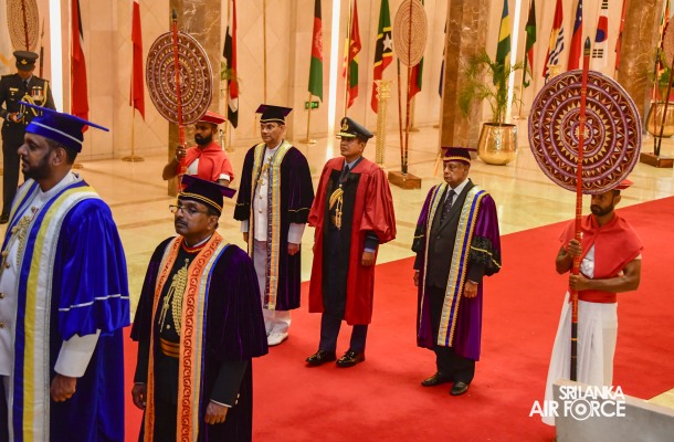Ambassadors and High Commissioners, Secretaries of other ministries, Chancellor of General Sir John Kotelawala Defence University, General SHS Kottegoda, Chief of Defence Staff, General Shavendra Silva, Commander of the Army, Lieutenant General Vikum Liyanage , Commander of the Navy, Vice Admiral Priyantha Perera and the Commander of the Air Force, Air Marshal Udeni Rajapaksa, Vice Chancellor, Rear Admiral Dammika Kumara, members of the Air Force Board of Management, Inspector General of Police, Director-General of the Civil Defence Force and other Heads of the Security Sector, were among the distinguished gathering.