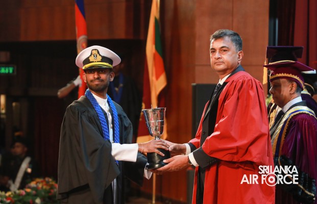 In recognition of outstanding achievements, the Secretary to the Ministry of Defence presented special awards to Lieutenant MVC Sakya as the Best Army Officer, Lieutenant IS Kudaligama as the Best Naval Officer and Flying Officer WDRS Wickramarachchi as the Best Air Force Officer. The prestigious Sword of Honour for the Best All-Round Performance from Intake 37 was awarded to Lieutenant DMSP Jayalath.