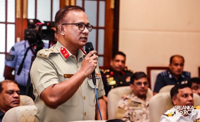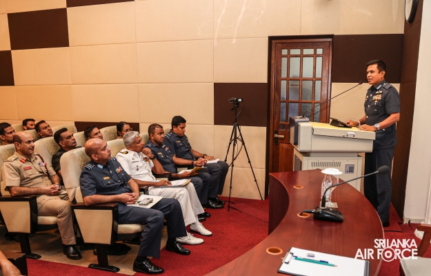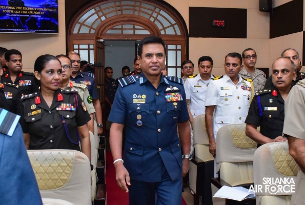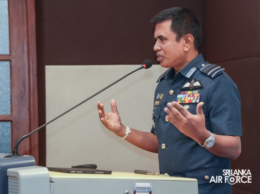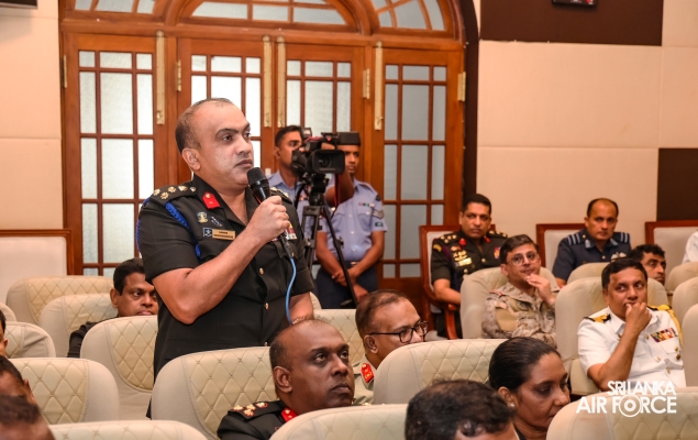 The Commander of the Air Force, Air Marshal Udeni Rajapaksa was invited to conduct a Guest Lecture on ‘Understanding the security dynamics of south asia for Air Forces; Collaborative Air Power and Strategy' for the officers of Tri-Services and Police of Course No. 03 at National Defence College today (28 October 2024).