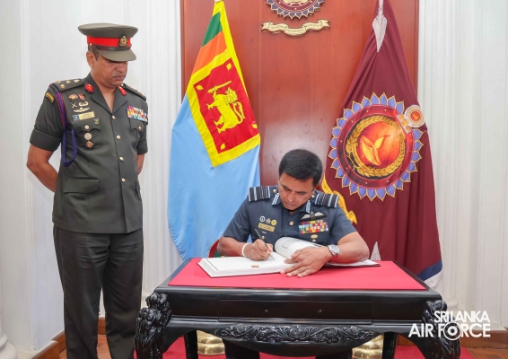 The mementos were exchanged at the end of the event between the Commandant of the National Defence College and the Commander of the Air Force to denote the occasion. Air Marshal Udeni Rajapaksa endorsed his greetings in the Visitors’ Book marking his visit to the prestigious National Defence College.