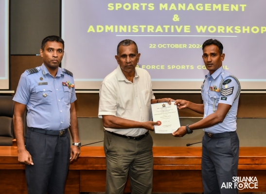 The Air Force Sports Council organized a two-day Sports Management and Administration workshop, led under the guidance of the President of the Air Force Sports Council, Commander of the Air Force, Air Marshal Udeni Rajapaksa and coordinated by the Secretary of the Air Force Sports Council, Group Captain Eranda Geeganage. The workshop, designed to elevate the strategic direction of SLAF sports programmes, gathered sports managers, coaches, Secretaries and Assistant Secretaries from SLAF’s 39 sports disciplines. Addressing modern challenges in sports administration, the sessions emphasized a macro-level approach, adapted to meet the evolving landscape shaped by societal shifts and the post-COVID-19 era’s global disturbances.