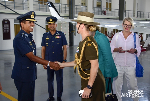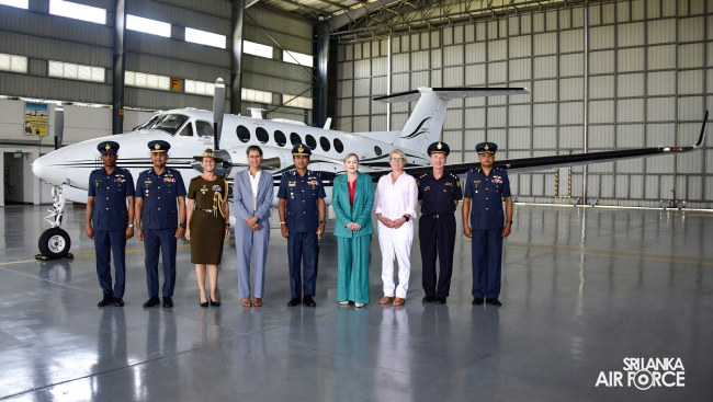 As a distinguished addition to the inspection, the Commander, accompanied by Australian envoys and the Base Commander of SLAF Base Ratmalana, Air Commodore Asela Jayasekara visited No. 8 Squadron Hangar Complex to conduct an inspection of the newly granted Beechcraft King Air 350 aircraft, provided by the Royal Australian Air Force.