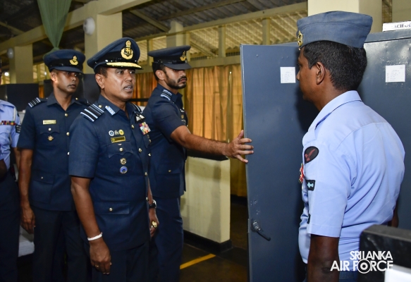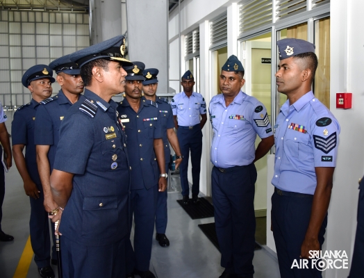 During the full-day inspection, the Commander visited Base Headquarters, No.8 Light Transport Squadron, Sports Complex and arena, the new Office Block for the No. 61 Flight was declared opened by the Commander, No. 4 VVIP/VIP Helicopter Squadron, Visited the construction site of the new Pre-School and Day care complex, Base Hospital, SLAF Welfare Project Unit, Air Field Construction Wing, No. 1 Information Technology Unit, the Air Force Museum, Aircraft Support Wing, No. 27 Regiment Wing, No. 2 Electronics & Telecommunications Wing, the Warrant Officers’ & SNCO’s Mess, the Officer’s Mess, followed by an All Ranks Lunch at the Airmen/Airwomen's Mess.