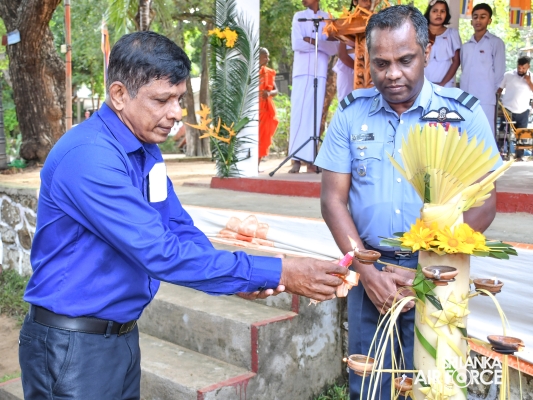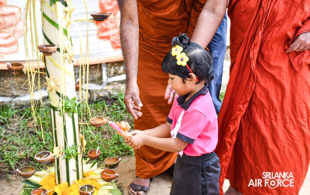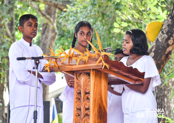 Base Commander of SLAF Base Higurakgoda, Air Commodore Dinesh Jayaweera, Secretary Air Force Seva Vanitha, Squadron Leader Viludani Yatawara and members, Officer In Charge and the members of SLAF Base Higurakgoda Seva Vanitha unit, Chief Priest of the Dhamma school, teachers, parents and students participated in this occasion.