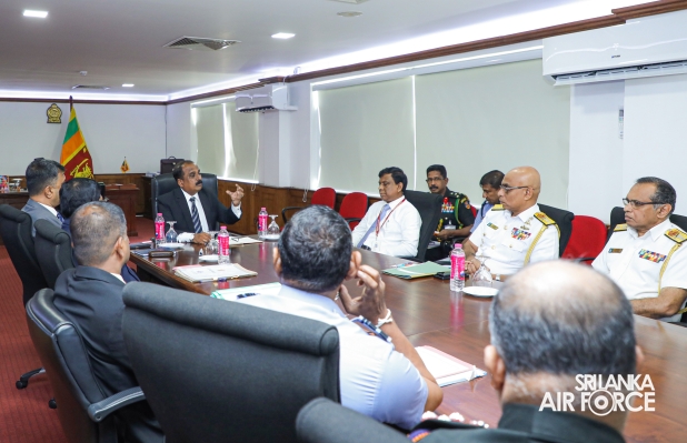 Defence Secretary, Air Vice Marshal Sampath Thuyacontha (Retd) also joined the Deputy Minister of Defence at the discussion. Additional Secretary - Defence, Chairman of the Ranaviru Seva Authority (RSA) and senior tri-forces officers were also present at the meeting.