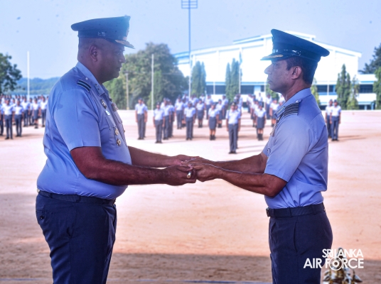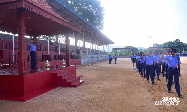 The Change of Command of the SLAF Academy China Bay was held today (19 December 2024). The traditional Handing Over/ Taking Over Parade took place at the Academy Parade Square premises where the Acting Commandant Group Captain DL Hewavitharana WV, RWP and Bar, RSP and three Bars, USP, MMS (Mil Com-PRC), BSc (Def Stu), Pg Dip (Def Mgt), psc, qhi handed over command to Air Commodore WPAH Perera RSP and Bar, MSc (Def & Strat Stu), MA (SSS - USA), BSc (Def Stu), ndc (Ind), ctf - ndu, psc. Group Captain DL Hewavitharana will be remaining at the Academy as the Deputy Commandant.