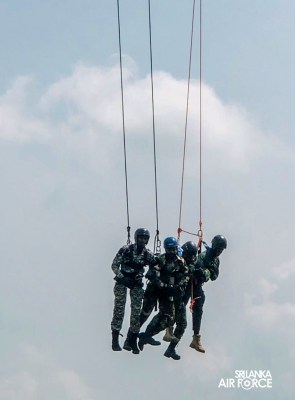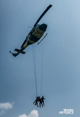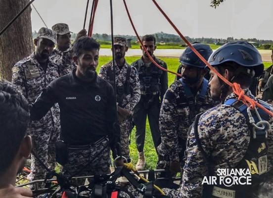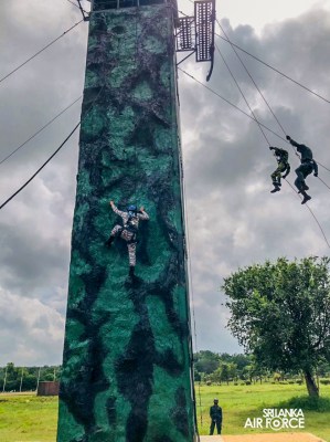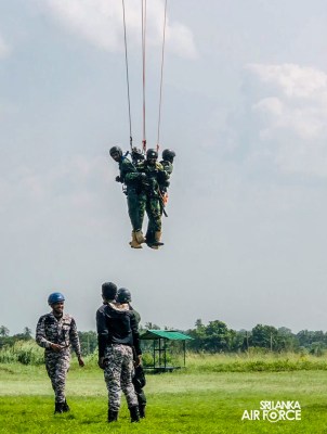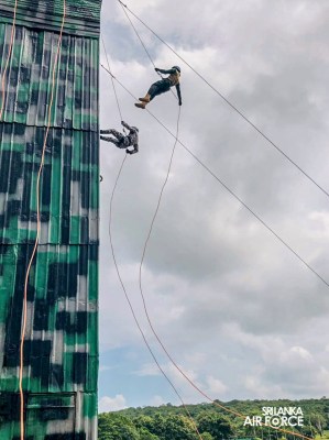 RSFTS conducted No. 10 Heli-borne Operation training module, which comprised a tower training exercise for Abseiling, Rappelling, Fast Rope, Heli Marshaling and Special Rescue Training methods to make a feasible platform to conduct an aircraft training exercise in the same context. Further, the same training modules, including map craft, GPS handling and GPS march to find the distressed personnel in any terrain with any situations. The aircraft training exercise phase included with Rapid Deployment, Rappelling, STABO, Rope Rescue, Insertion and Extraction and CASEVAC Operation using litter kit exercise which was conducted at SLAF Base Hingurakgoda.