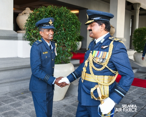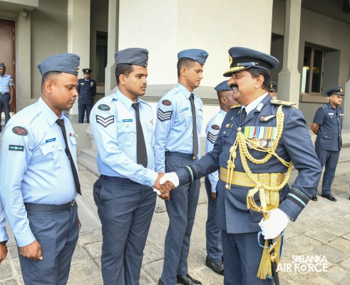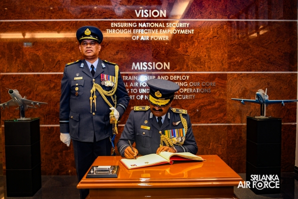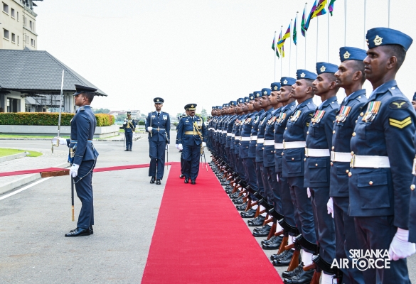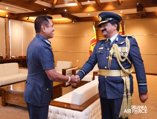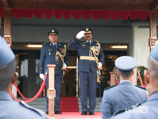 The Commander and Air Vice Marshal Pathirage exchanged mementos to mark the occasion. Following this formal meeting, Air Vice Marshal Pathirage was accorded a Ceremonial Guard of Honour by the SLAF Colour Wing. He then departed from Air Force Headquarters at the Defence Headquarters Complex for the final time, bringing to a close a career marked by dedication, resilience and profound service to the nation.