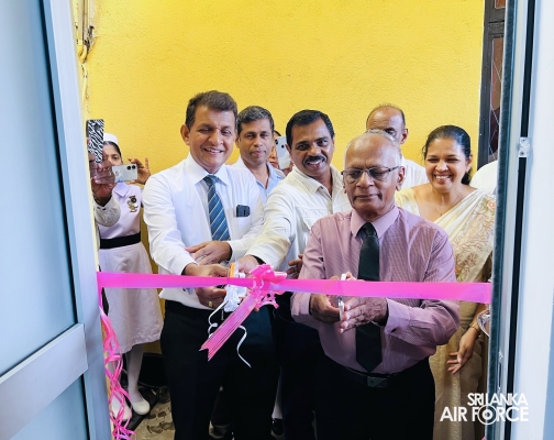 The Chairperson SLAF Seva Vanitha Unit, Mrs. Enoka Rajapaksha accompanied by the Commanding Officer of SLAF Station Katukurunda, Group Captain Manjula Abeywickrama, participated in the ceremonial opening of the newly constructed Dispensary of the Outpatient Department of the Base Hospital Elpitiya for public ownership today (04 January 2025).