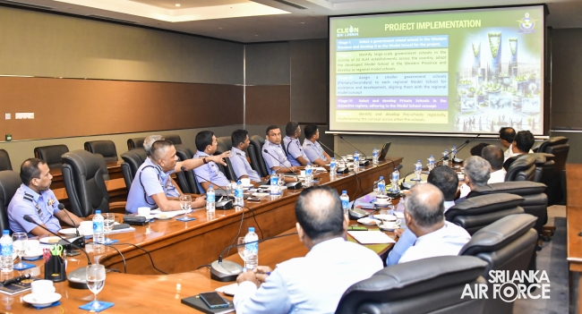 During the conference, discussions revolved around three proposed initiatives that will be implemented under the Air Force’s leadership. The first project focuses on the development of a model school to promote sustainable practices, improved sanitation, and enhanced educational facilities. This initiative, to be undertaken in collaboration with the Ministry of Education and the Office of Clean Sri Lanka, will be headed by Air Commodore Vijira Senadeera. The second initiative aims to improve sanitary facilities in tourist-attractive areas in collaboration with the Sri Lanka Tourism Development Authority (SLTDA) and LB Finance. This project, led by Air Commodore Suresh Jayasinghe, seeks to elevate the standards of cleanliness and infrastructure at key tourist sites, ensuring a positive visitor experience and supporting sustainable tourism efforts. The third initiative addresses the issue of malnutrition among children, with a focus on preparing a database and providing nutritional support to vulnerable communities. This project will be implemented in collaboration with the Ministry of Health's Family Health Bureau and will be led by Group Captain Chaminda Herath.