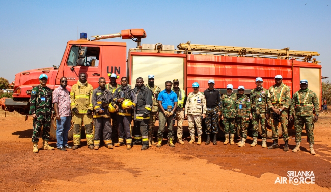 A historic achievement was made at the MINUSCA Bria Airport yesterday (07 January 2025), as it hosted its first-ever Aircraft Firefighting and Rescue Simulator training. This event marks a crucial step in enhancing emergency response capabilities within the Central African Republic. The exercise was organized under the guidance of Mr. Kendjo Mukendi Tomboji, Aviation Fire Marshal of the Air Terminal Unit at Mpoko International Airport, Bangui, in collaboration with international firefighting experts, including the Sri Lanka Air Force’s 10th Contingent Rescue Firefighters.
