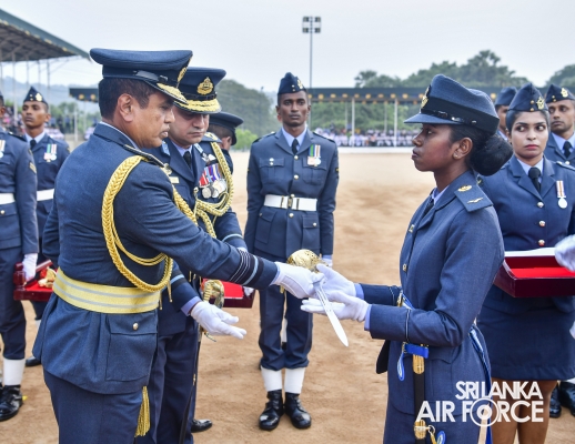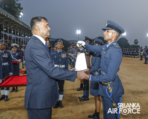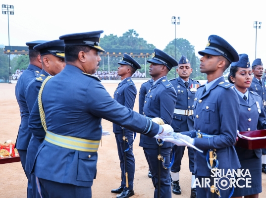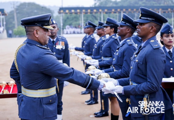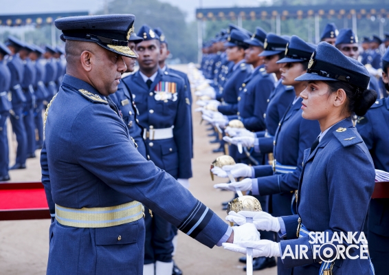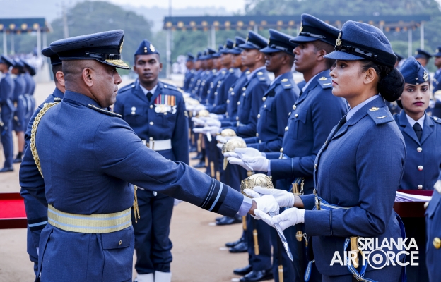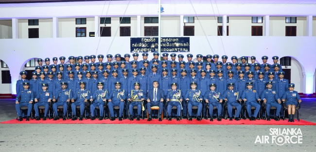 This was the culmination of nearly three years of intensive training and dedications by the Officers who were from different branches, namely General Duties Pilot, Aeronautical and General Engineering, Electronics Engineering, Operations Air, Administrative, Regiment, Logistics and Provost. Having begun initial training at the Combat Training School in Diyatalawa and at the Kotelawala Defence University, these Officers subsequently completed their Service Administration, Academic Studies Module and Specialized Branch modules at the Flying and Ground Training Wings in China Bay and the Combat Training School in Diyatalawa.