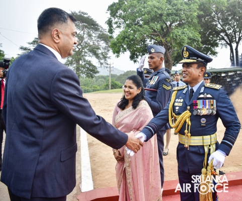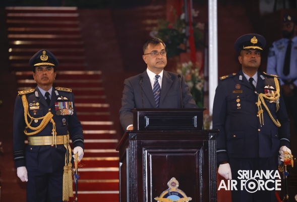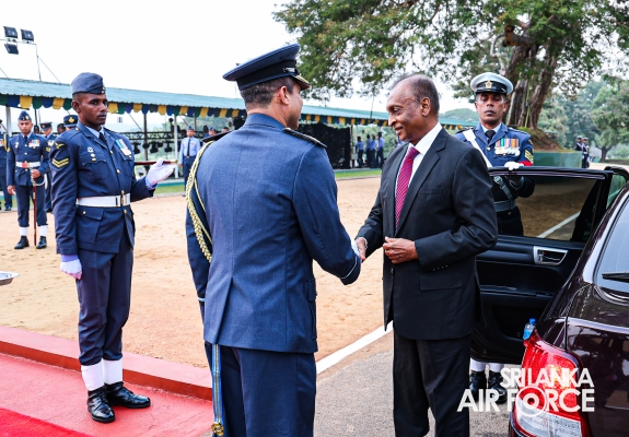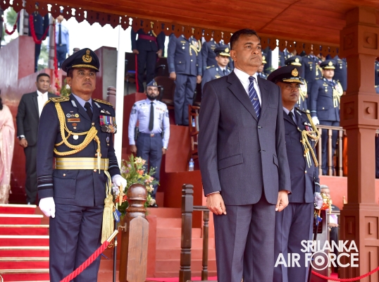 On the invitation of the Commander of the Air Force, Air Marshal Udeni Rajapaksa, the Secretary to the Ministry of Defence, Air Vice Marshal Sampath Thuyacontha (Retd) took the salute as the Chief Guest at this historical occasion, which was held at the SLAF Academy in China Bay. As the gesture of the commencement of the proceedings, an aerial salute was honoured by one K-8 aircraft to the Secretary to the Ministry of Defence, after the arrival to the Saluting Dais.