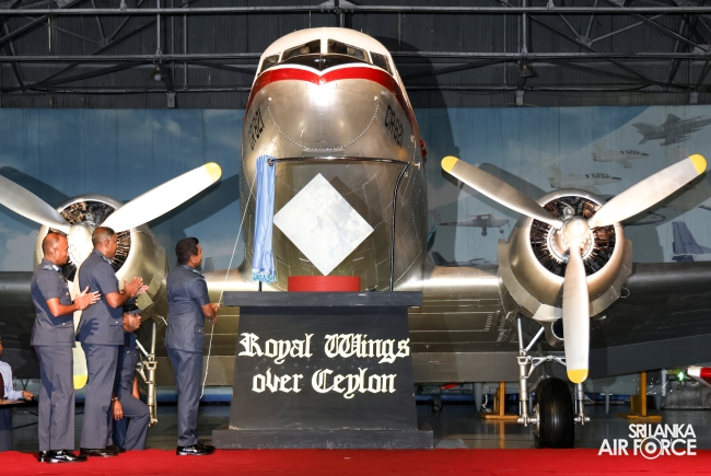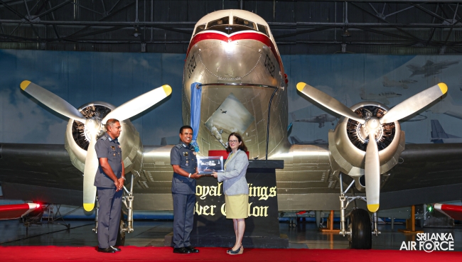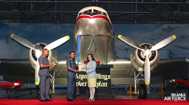 The SLAF made a special commemoration of its rich aviation legacy today, (21 January 2025), with the launch of its latest historical publication, ‘Royal Wings Over Ceylon'. The event, held at the Air Force Museum – SLAF Base Ratmalana, was graced by the Commander of the Air Force, Air Marshal Udeni Rajapaksa, as the Chief Guest and the Deputy High Commissioner at the British High Commission in Sri Lanka, Ms. Lisa Whanstall, as the Guest of Honour. This milestone publication highlights the early years of air power in Sri Lanka during the Royal Air Force era, which paved the way for the establishment of the Royal Ceylon Air Force in 1951.
