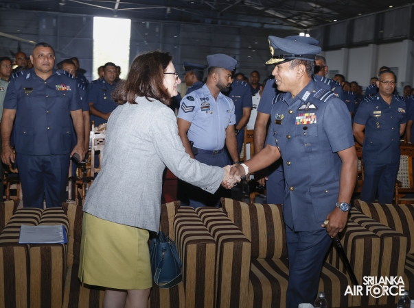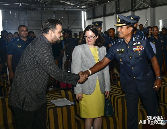 The ceremonial launch of the publication was the highlight of the event. The first copy of ‘Royal Wings Over Ceylon' was presented by the Editor-in-Chief, Air Commodore Poojana Gunatilake and Air Secretary, Air Commodore Dushan Wijesinghe, to the Commander of the Air Force. This was followed by the second copy being ceremonially handed over to the Guest of Honour, Ms. Lisa Whanstall, who also received a memento in appreciation of her presence.