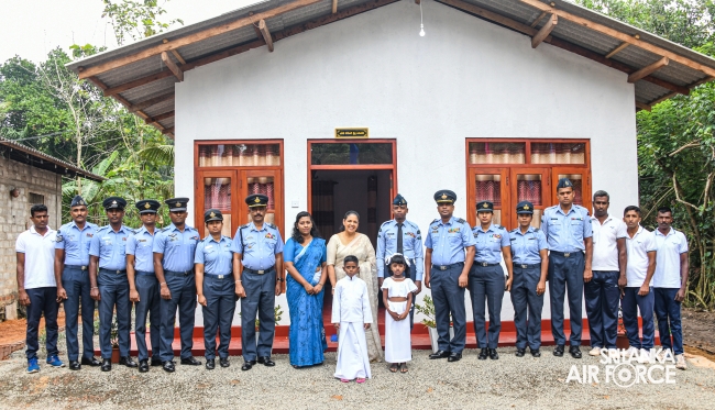 A house constructed under the SLAF Seva Vanitha Unit was handed over to the family of Leading Aircraftman Gamage GDRDK yesterday (27 January 2025) and the House Warming Ceremony was held at Mahawadduwa, Wadduwa. The Chairperson SLAF Seva Vanitha Unit, Mrs. Enoka Rajapaksa, graced the occasion as the Chief Guest.
