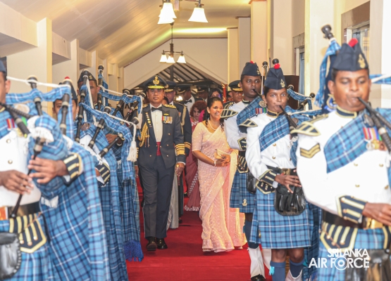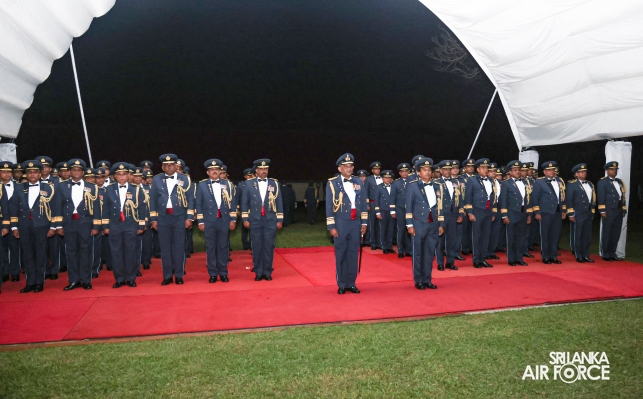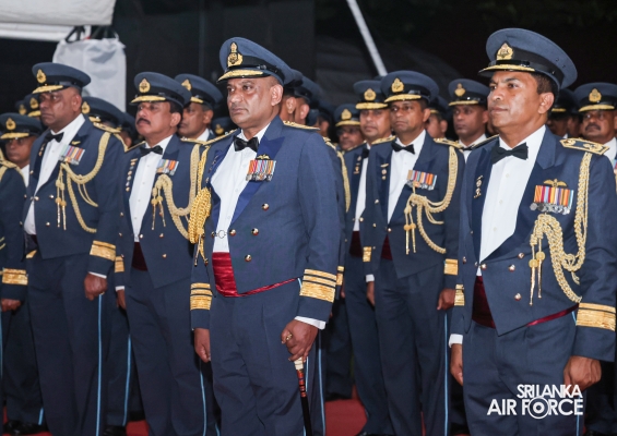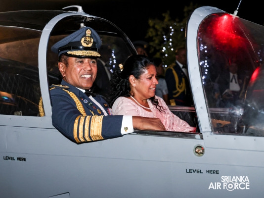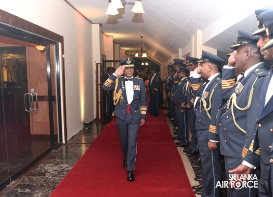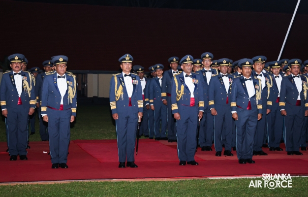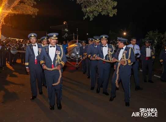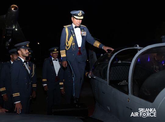Following the ceremonial parade, the customary Dining-Out was held at the Officers' Mess of SLAF Base Katunayake. This event was organized to honour the service of Air Chief Marshal Udeni Rajapaksa and his wife, Mrs. Enoka Rajapaksa. In the Air Force tradition, it is customary to ceremonially dine out with the outgoing Air Chief. At the end of the event, the outgoing Commander seated in a SIAI-Marchetti aircraft and towed away from the Officers' Mess, symbolizing his departure from the Air Force.