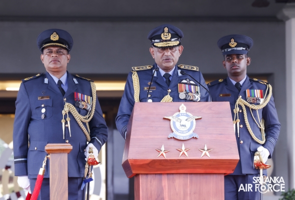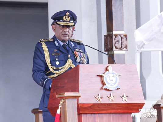 His primary objective is to further Enhance Operational Capabilities of the Air Force by effectively utilizing airpower, including the acquiring of air platforms, specifically through military diplomacy to strengthen the fleet and transforming it into a force that can consistently respond to the needs of the nation. Under the Technological Development Cluster, he highlighted procedures to enhance air defence systems, advance drone and UAV technology and prepare the Air Force for a future driven by innovation. Within the Global Operations and Security Frame, he mentioned the expansion of UN peacekeeping operations, equipping the SLAF for global demands. Focusing on the Maritime Security and Surveillance Cluster, he endorsed the SLAF’s commitment to securing the Indian Ocean region, enhancing surveillance operations and strengthening domestic and international cooperation. As part of the National Development and Environmental Sustainability Figure, he pledged full support for the Clean Sri Lanka programme (2025), reinforcing the Air Force’s role in national welfare and environmental sustainability. His address outlined a progressive roadmap for the SLAF, ensuring its readiness to meet future challenges while upholding national security and international commitments.