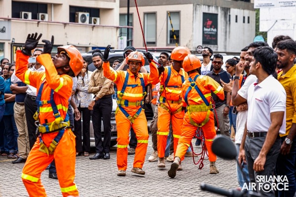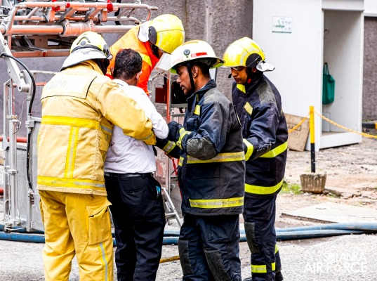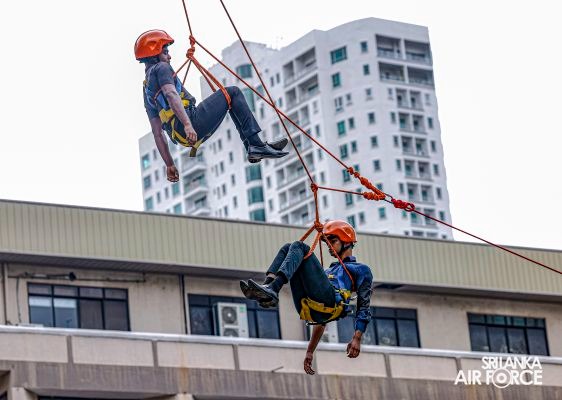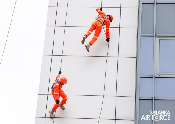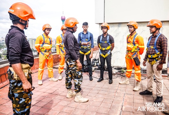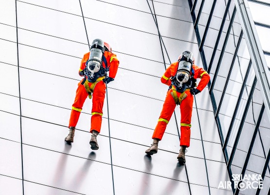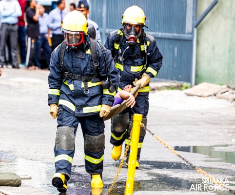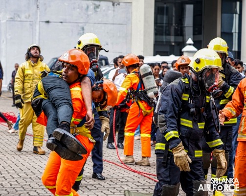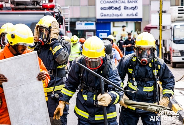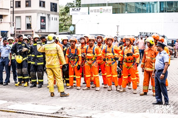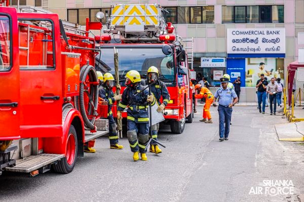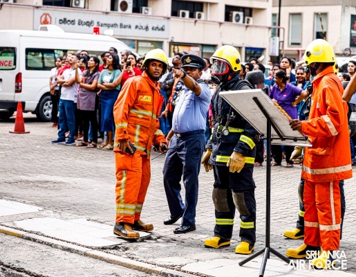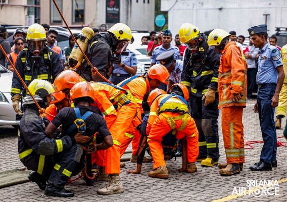 The emergency drill was conducted under the guidance of the Director General Air Operations, Air Vice Marshal Lasitha Sumanaweera. The exercise was supervised by the Chief Fire Officer of the SLAF, Group Captain Hemantha Balasooriya, along with the Commanding Officer of the Fire School and Fire Tender Maintenance Squadron at SLAF Base Katunayake, Wing Commander Chamil Hettiarachchi, Station Fire Officer Colombo, Wing Commander Sasanka Mendis and Rappel Master, Flight Sergeant Chathuranga JADLN.