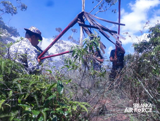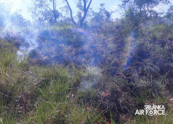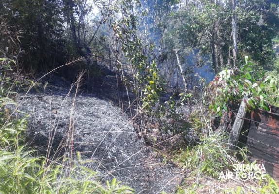 The Disaster Management Centre in Badulla provided information regarding the fire in the morning, following which, under the directives of the Commanding Officer of SLAF Combat Training School Diyatalawa, the officers and airmen were promptly deployed to the affected area. Their swift and coordinated efforts enabled them to bring the fire under control within six hours, preventing further spread and minimizing potential damage.
