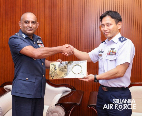 A delegation from the Ministry of Defense of Japan and the Japan Air Self-Defence Force, headed by Colonel WADA Natsuki, paid a courtesy call on the Commander of the Air Force, Air Marshal Bandu Edirisinghe, at the Bandaranaike Memorial International Conference Hall (BMICH) today (10 February 2025). The meeting included cordial discussions on matters of mutual interest, further strengthening the defence cooperation between the two nations.