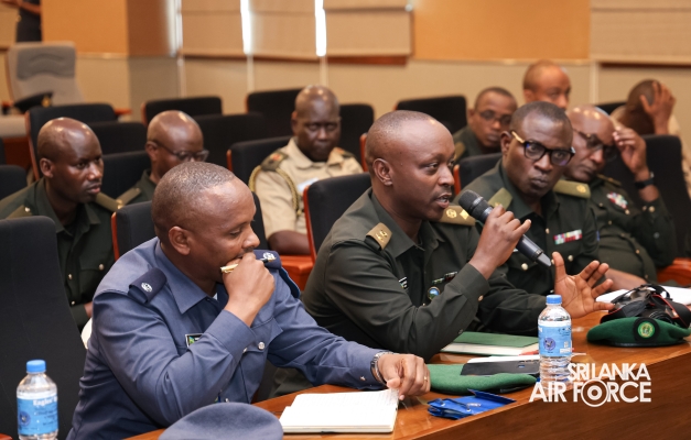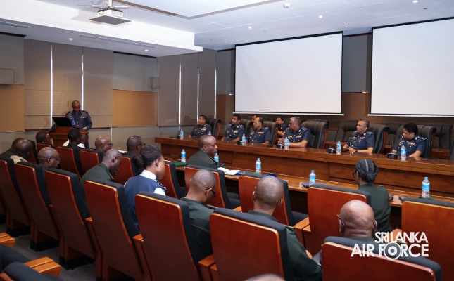 During the visit, the head of the delegation, Colonel Lausanne Nsengimana Ingabire, accompanied by a group of senior officers, called on the Deputy Chief of Staff, Air Vice Marshal Chaminda Wickremaratne, in the absence of the Commander of the Air Force. The visiting delegation comprised 15 student officers and four Directing Staff members from the Rwanda Defence Force Command and Staff College.