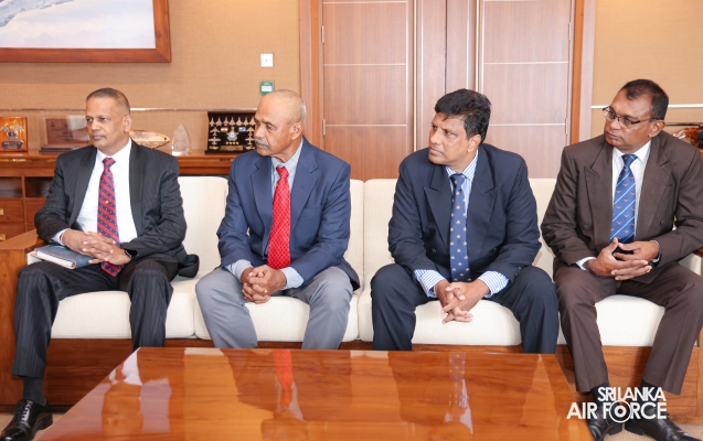 The incumbent Hon. President of the Association, Air Vice Marshal Elmo Perera (Retd), Hon. Third Vice President, Air Vice Marshal LMSK Leelarathne (Retd), Coordinator, Air Commodore Amal Wimalaratne (Retd) and other members of the association visited the Commander and had discussions on matters of mutual interest and also on future measures to develop even better interaction between the Association and the SLAF.