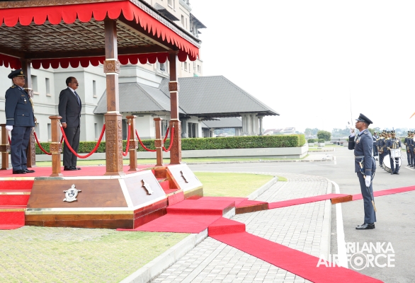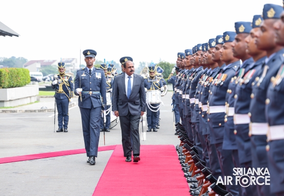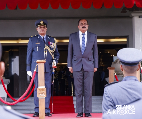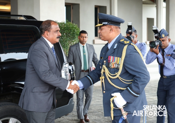Major General Aruna Jayasekara (Retd) made his inaugural visit to the Air Force Headquarters yesterday (13 February 2025) following his appointment as the Deputy Minister Defence. Upon his arrival, the the Deputy Minister was accorded a ceremonial guard of honour by the Sri Lanka Air Force Colour Wing. The Deputy Minister received a warm welcome from the Commanding Officer of SLAF Station Sri Jayewardenepura, Air Commodore Manoj Galappaththi.